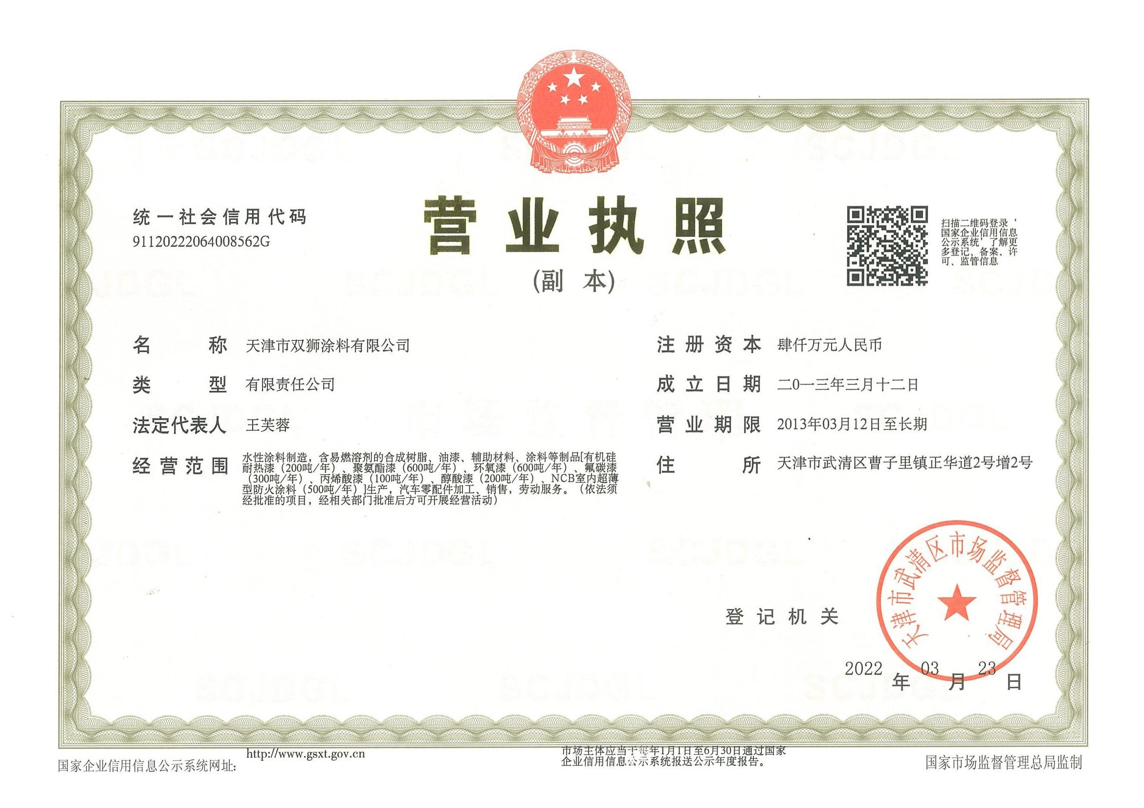 天津市双狮涂料有限公司位于天津武清,致力于高端环保工业和工程建设防腐防护涂料的研发与生产,如今已成长为一家具备年生产专业涂料2万吨的现代化化工企业。